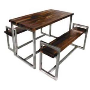 D23 - SET OF SS DINING TABLE WITH 4 BENCH